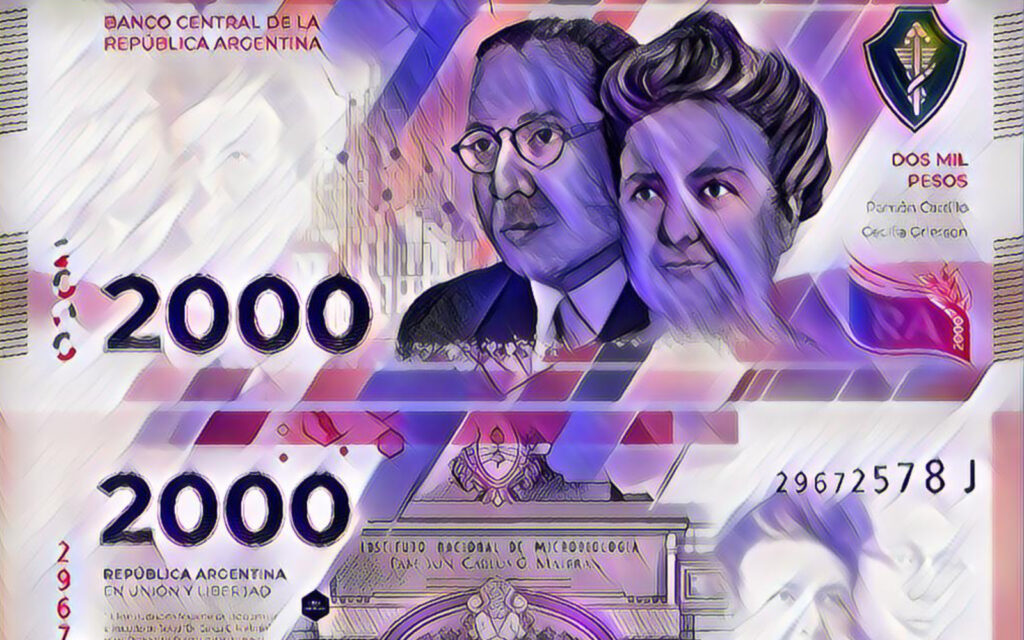 El nuevo billete conmemora el desarrollo de la ciencia y la salud pública en el país, con las imágenes de la Dra. Cecilia Grierson y el Dr. Ramón Carrillo en el anverso, y del edificio del Instituto Nacional de Microbiología Dr. Carlos G. Malbrán en el reverso.
