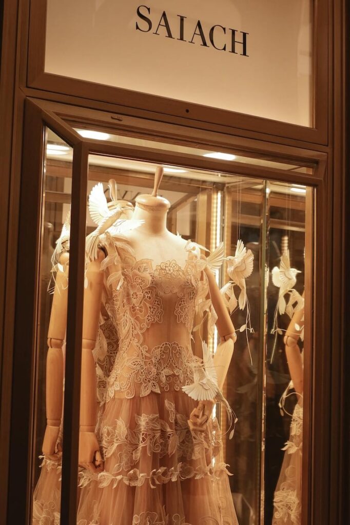 El espacio, históricamente reservado a las grandes casas de la alta costura internacional, abrió sus puertas al diseño nacional. “Tener mi propia vitrina en el Ritz, rodeado de diseñadores internacionales, es un antes y un después en mi carrera”, declaró Saiach.
