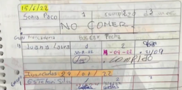 Los mecanismos de extorsión se han confirmado a través de los detalles descubiertos en los ahora llamados “los cuadernos del hambre”. Junto al nombre de la persona “multada”, se describe el tipo de sanción que recibiría. Además, los investigadores han notado que algunas de las inscripciones datan del año 2022. Esto sugiere que este modus operandi se llevó a cabo mucho antes de las primeras denuncias realizadas a fines del año pasado a través de la línea 134, habilitada por el Ministerio de Seguridad.