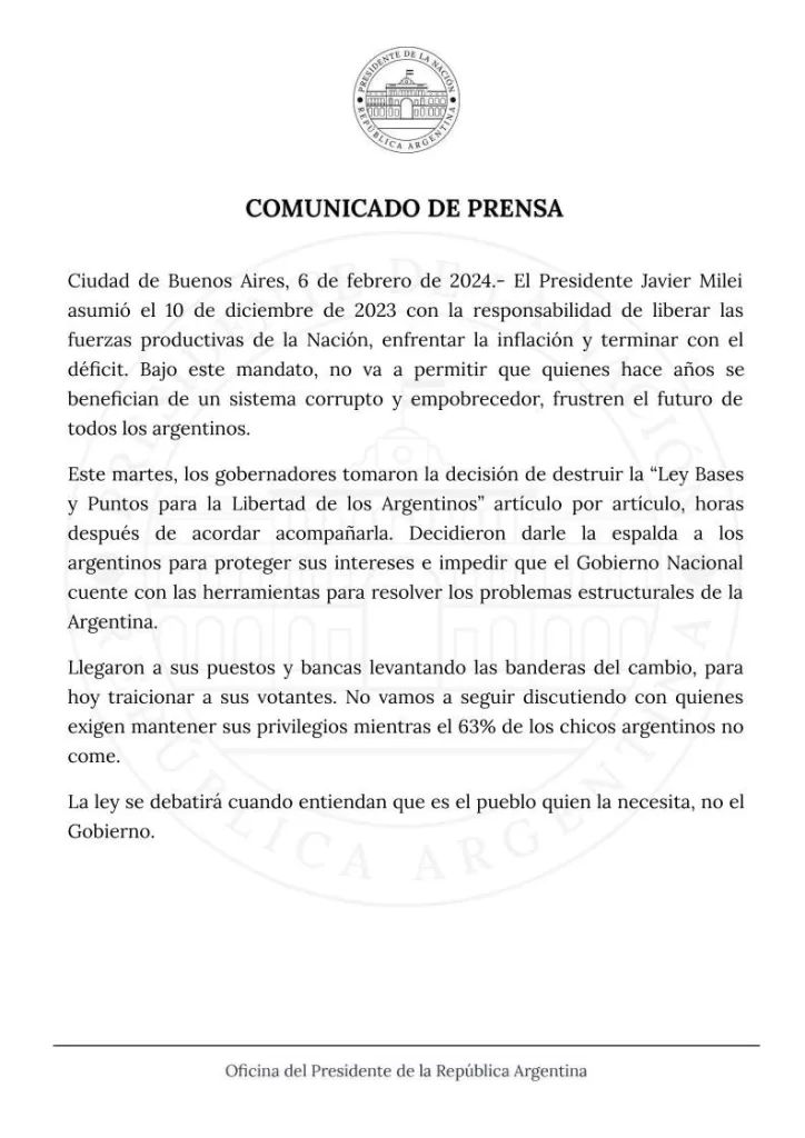 Desde su primera aparición pública, Milei basó su carrera política en comunicación y economía. El gobierno parece ser igual, es por eso que rápidamente el ministro de economía Luis Caputo salió a aclarar que esto no modifica el rumbo económico. Por el lado de Santiago Caputo, principal asesor de Milei y estratega político lo de ayer fue una victoria. Desde el punto de vista del relato, de un lado quedarón los que quieren la realidad y del otro los que se oponen con zancadillas. Eso quedó manestado en el comunicado que difundió la oficina del presidente en X.