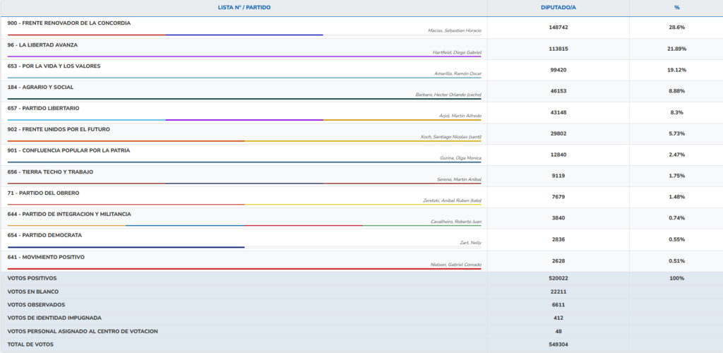 Resultados oficiales en Misiones con el triunfo del Frente Renovador de la Concordia y el segundo puesto de La Libertad Avanza