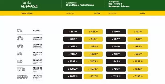 Las autopistas 25 de mayo y Perito Moreno tendrán un costo de $ 2.276 aunque, teniendo en cuenta el segundo tramo de aumentos, el valor se irá a $ 3.072,71, también en hora pico.